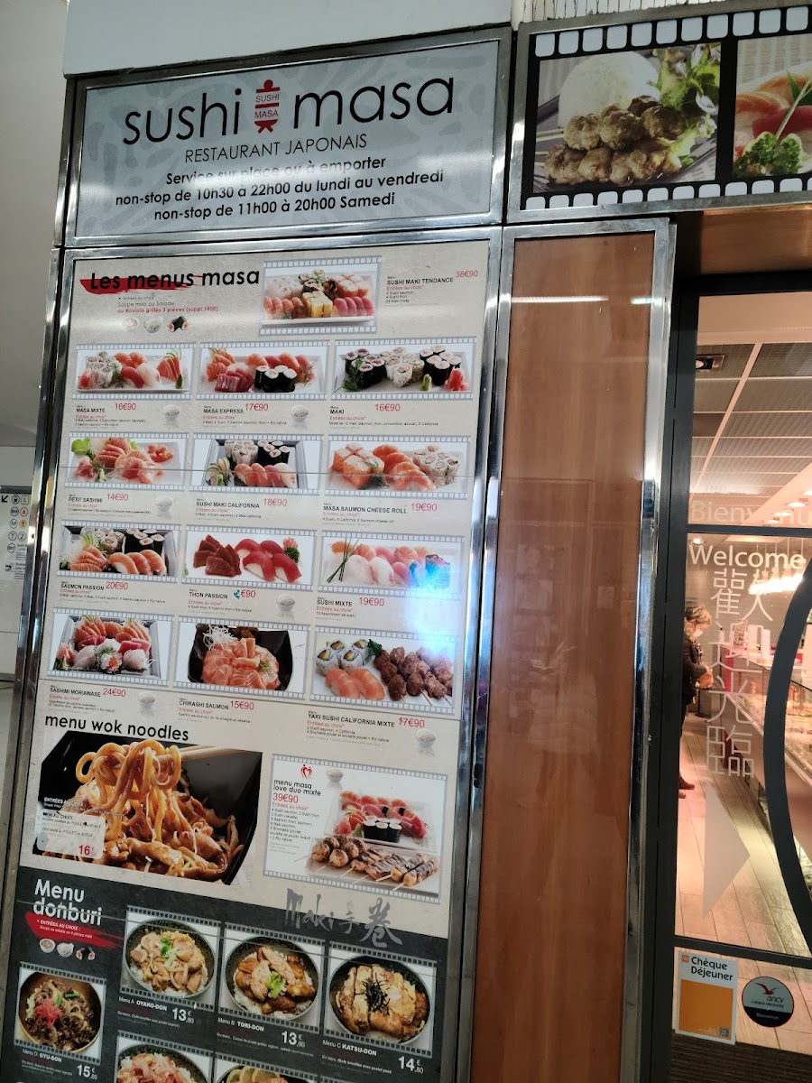 Welcome to Sushi Masa, a hidden gem nestled in the Mezzanine of the RER La Defense in Puteaux, France. This Japanese restaurant is a delightful stop for sushi enthusiasts and those seeking comforting hot meals. While the menu may not be extensive, the offerings include popular choices like the Unagi Don (eel rice bowl) and Gyoza (pork dumplings), praised for their balanced flavors and hearty portions.
